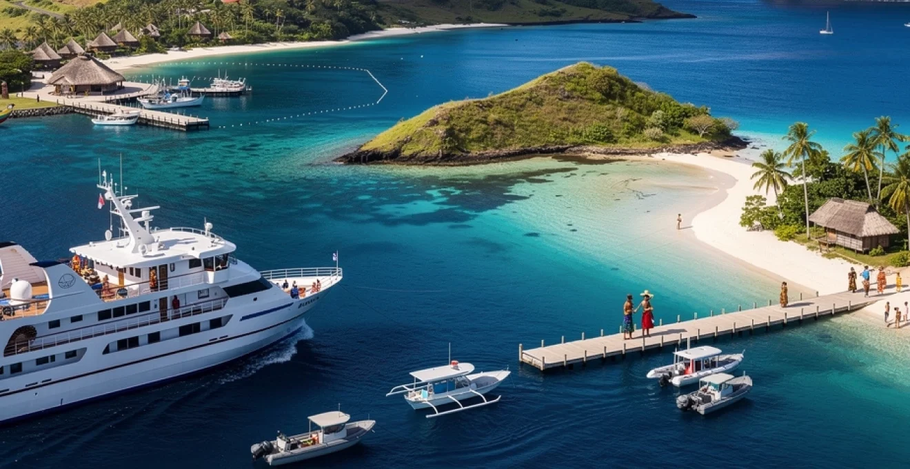 West of Fiji’s main island of Viti Levu, the Yasawa and Mamanuca archipelagos form one of the South Pacific’s most popular cruising corridors. These chains of volcanic and coral islands offer sheltered anchorages, clear lagoons, and a mix of traditional villages and world-class resorts, making them ideal for both small expedition vessels and larger cruise ships operating with tender support. The relatively short distances between islands allow flexible itineraries, enabling operators to adapt to changing weather while still delivering a diverse range of shore experiences.